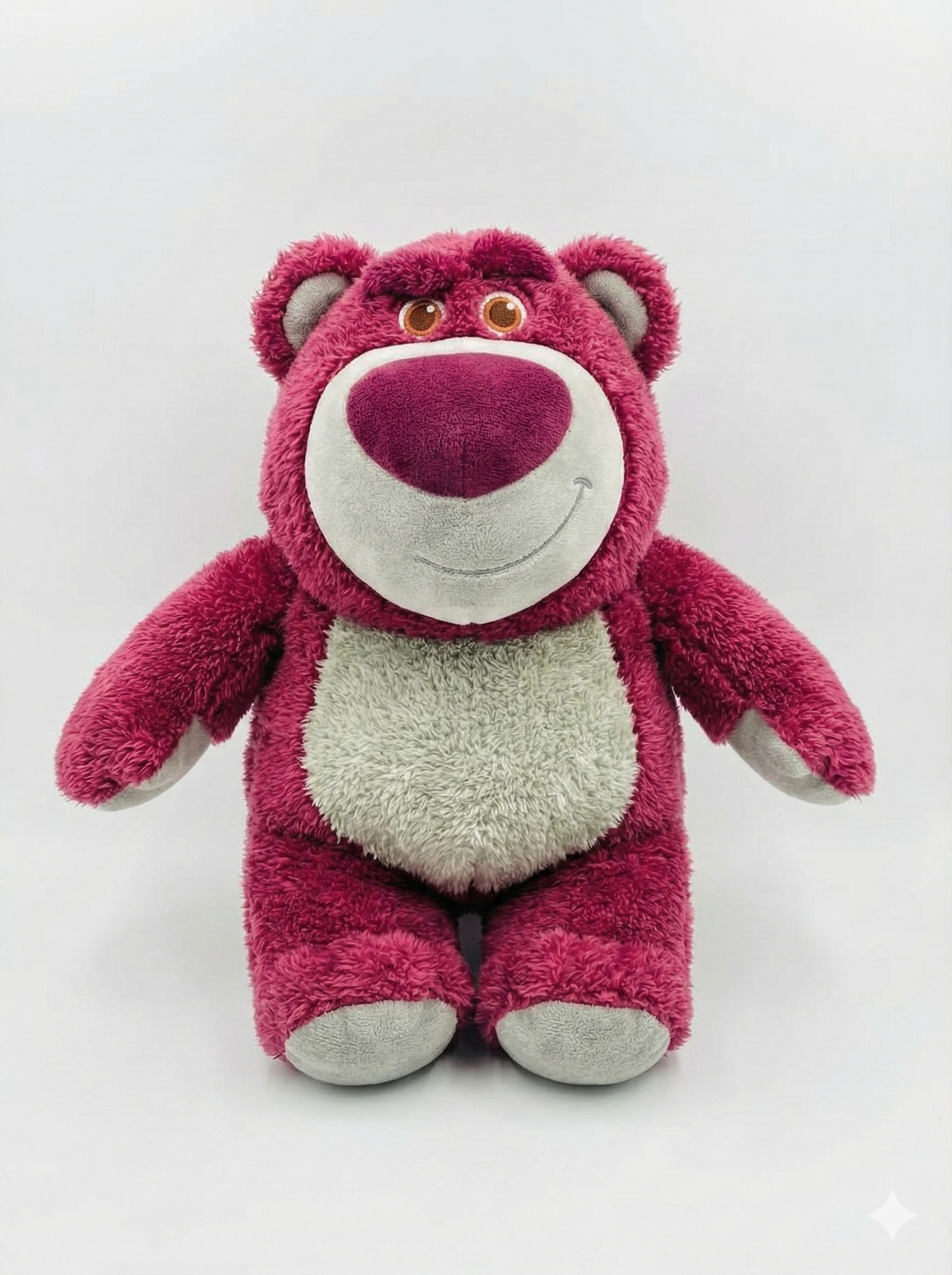 Más que un personaje icónico de la pantalla, este Lotso llega a tu vida para ofrecerte su versión más dulce y reconfortante. Olvida su historia en la película; aquí, su única misión es brindar compañía incondicional. Con su vibrante e inconfundible color magenta y una textura irresistiblemente suave, ha sido diseñado para ser ese abrazo perfecto que te espera al final del día.
