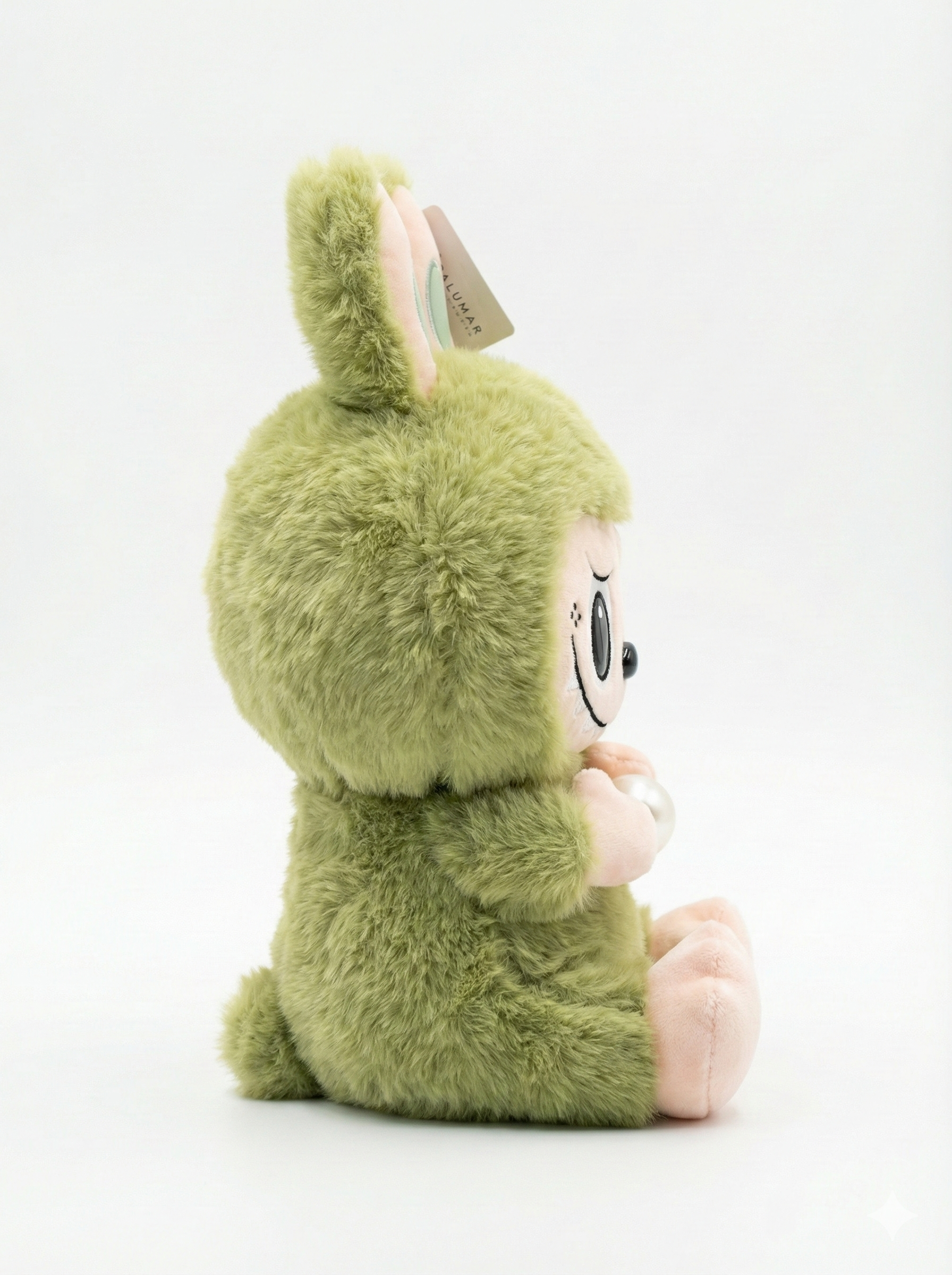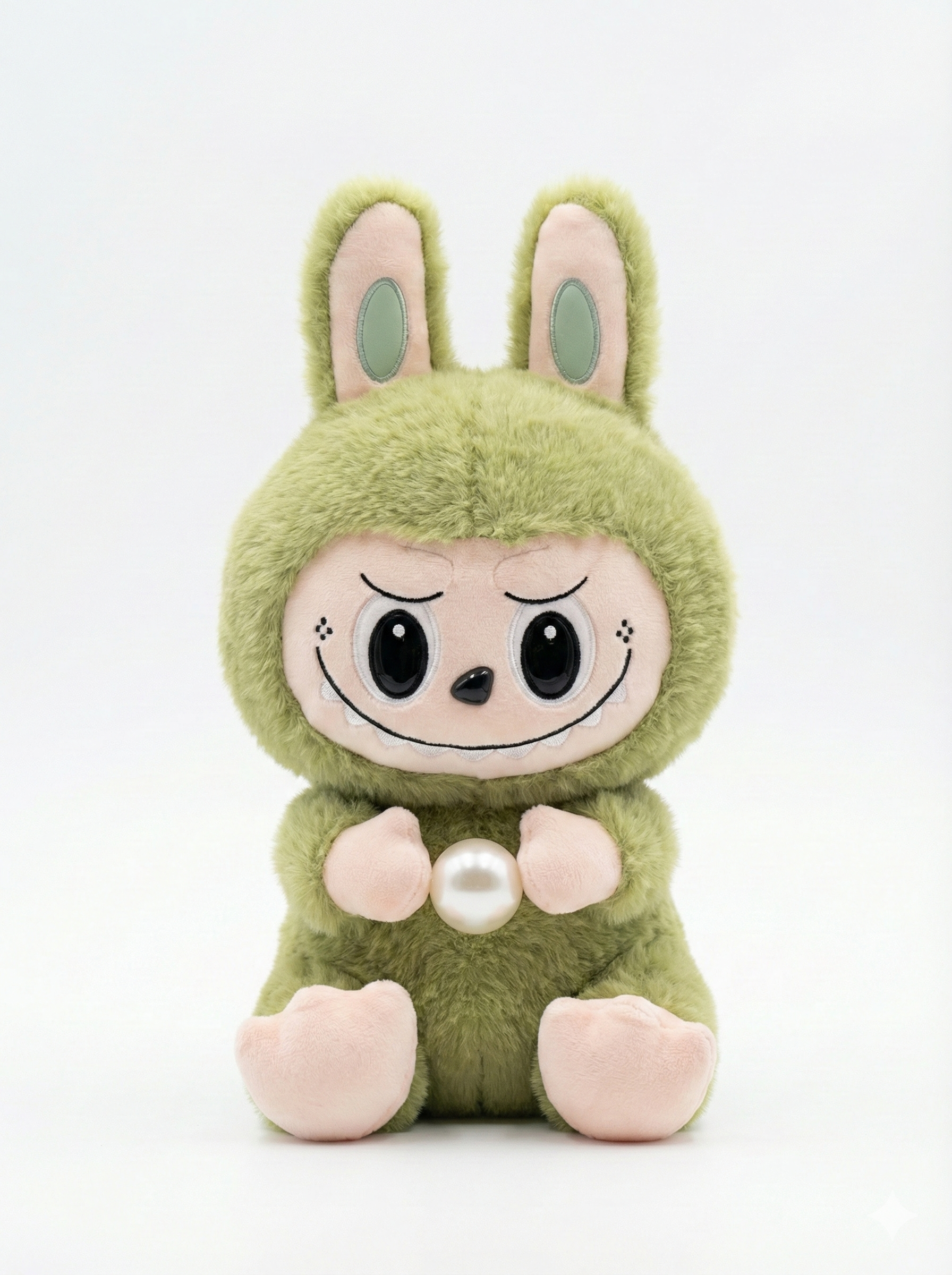 Su cuerpo está cubierto de una felpa de alta densidad y pelo largo, lo que lo hace increíblemente suave al tacto y "achuchable". Pero lo que realmente lo distingue es su tesoro: sostiene firmemente una gran perla blanca brillante, creando un contraste único entre lo salvaje y lo sofisticado.