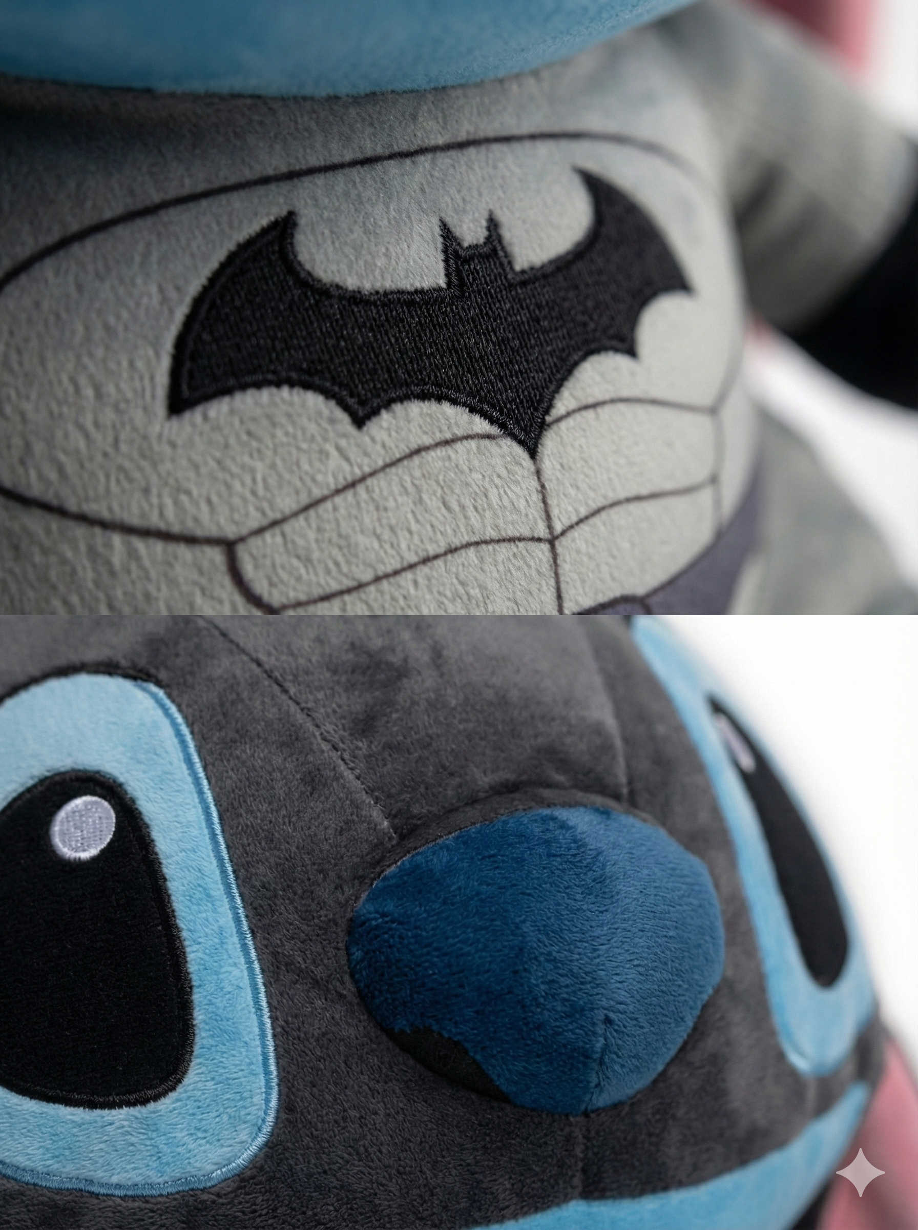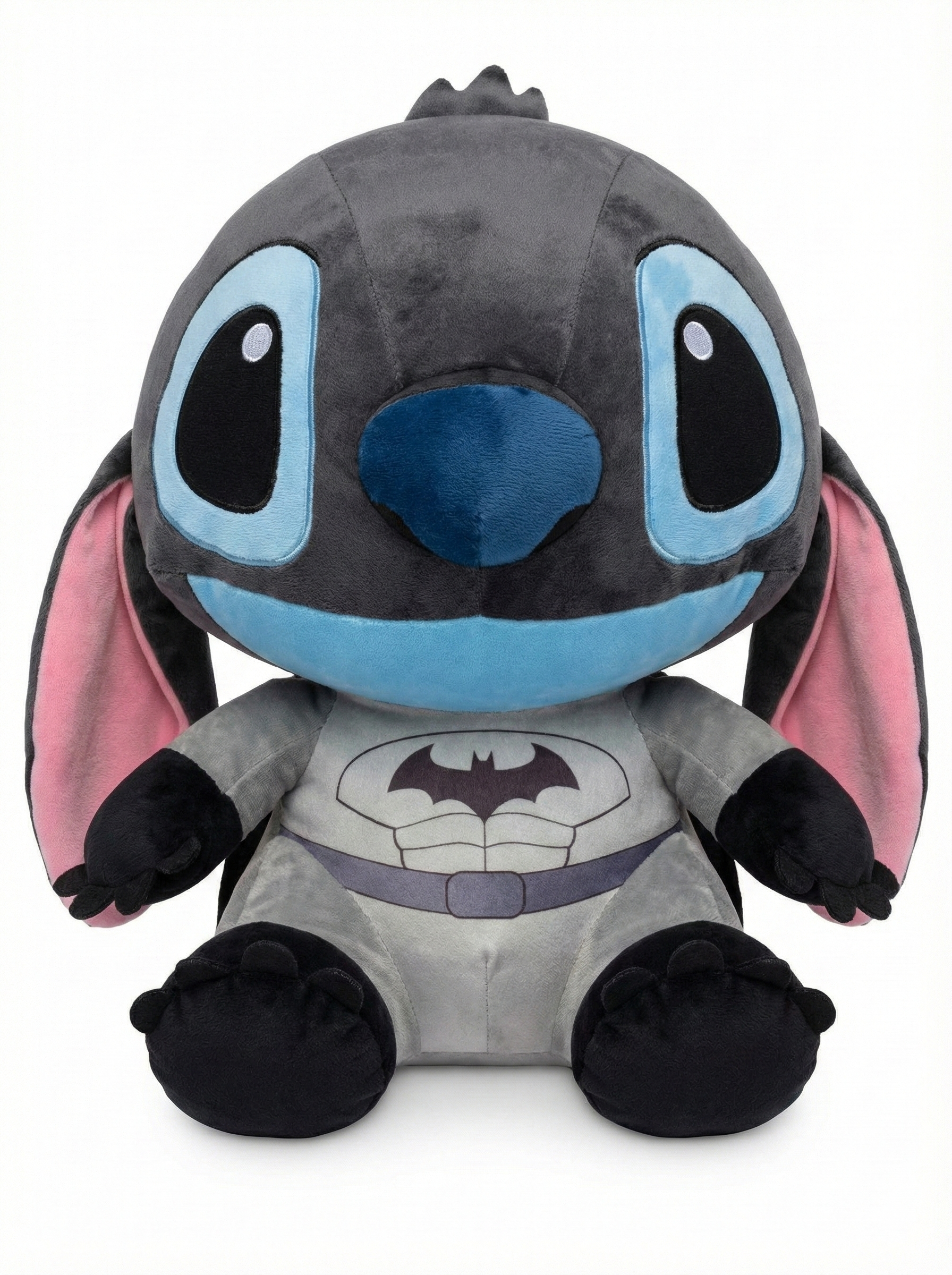 Cuando la travesura se encuentra con la justicia, nace el compañero más leal. Este Stitch, vestido con el icónico traje del Caballero de la Noche, no solo está listo para proteger Gotham, sino también para cuidar tus sueños y acompañarte en cada momento.