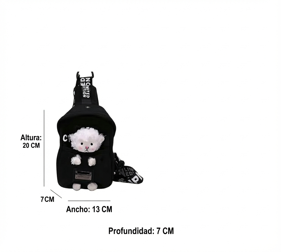 Sumá a tu outfit un toque adorable con estos bolsitos mini de 20 cm, diseñados para quienes aman los accesorios prácticos, compactos y con mucha personalidad. Cada bolsito incluye un muñeco de peluche integrado (osito o corderito según el modelo), que asoma desde el bolsillo frontal y le da un detalle único y tierno.